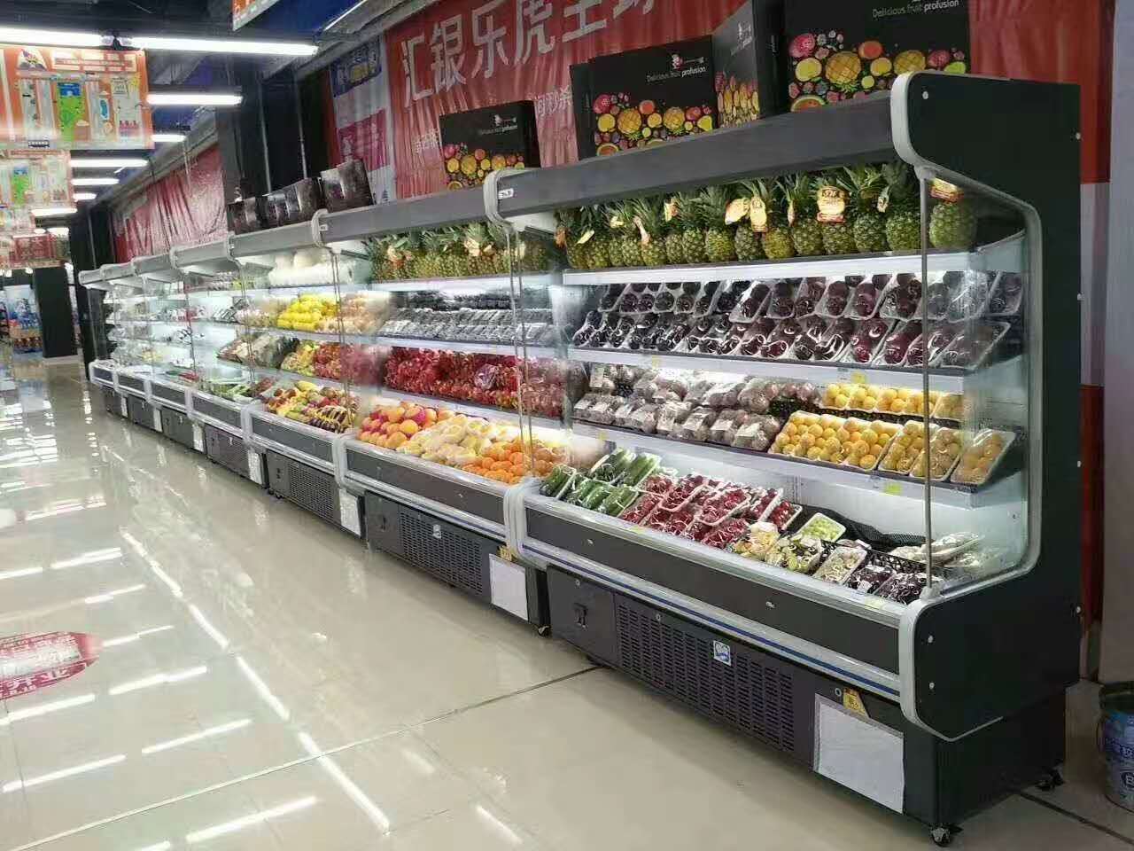 立風柜正常設定的溫度在2~8度之間,在超市里主要放飲料,酸奶,牛奶,真空包裝的肉食,熟食,水果等,不適合放裸裝食品。